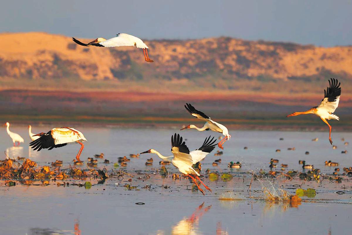 Възстановените влажни зони посрещат нови ята от мигриращи птици. [Photo provided to CHINA DAILY]