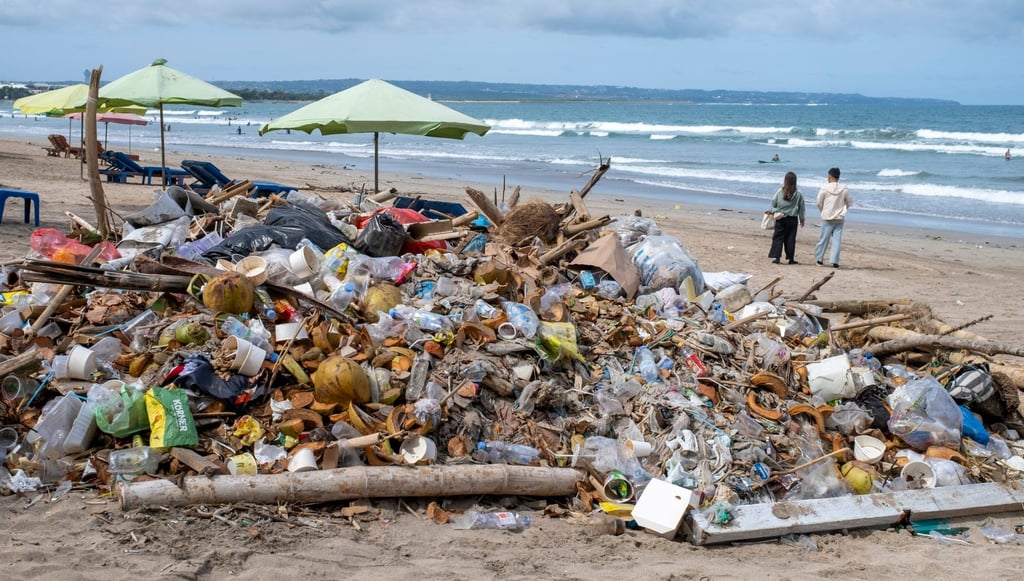 Купчина отпадъчни материали се вижда на плажа Кута в Бали по време на празниците Eid al-Fitr на 25 март. Снимка: EPA