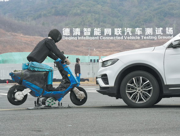 Манекени за краш тестове са монтирани на изпитателна площадка в Huzhou, провинция Zhejiang, през февруари. ZHOU XUHUI/ЗА КИТАЙ ДАЙЛИ
