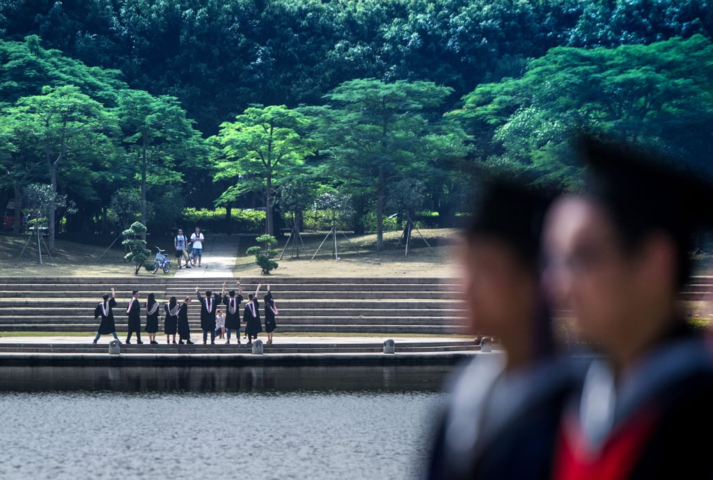Абсолвенти позират за снимки в университета Ксиамен през юни 2014 г. Съобщава се, че френският професор е бил редовен посетител в училището. Снимка: Xinhua
