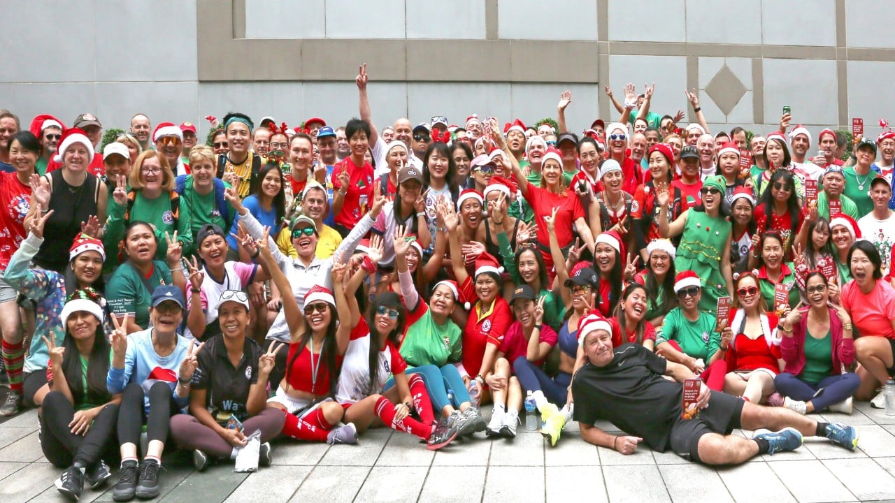 Облечени в празнични тоалети, близо 140 души се втурнаха по улиците на Хонконг в неделя за годишното благотворително бягане на Дядо Коледа, събирайки жизненоважни средства в процеса.