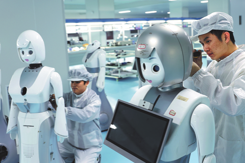 Персоналът на Zhejiang Hengdong Intelligence Technology Co Ltd сглобява новопроизведени роботи на 10 ноември в град Jinhua, провинция Zhejiang. ZOU HONG/КИТАЙ ДЕЙЛИ