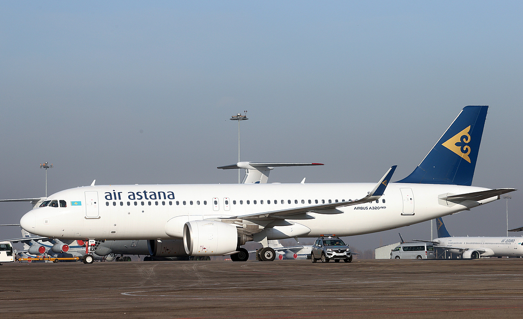 Реактивен самолет Airbus A320 Neo на Air Astana, забелязан на международното летище в Алмати. [Photo/VCG]