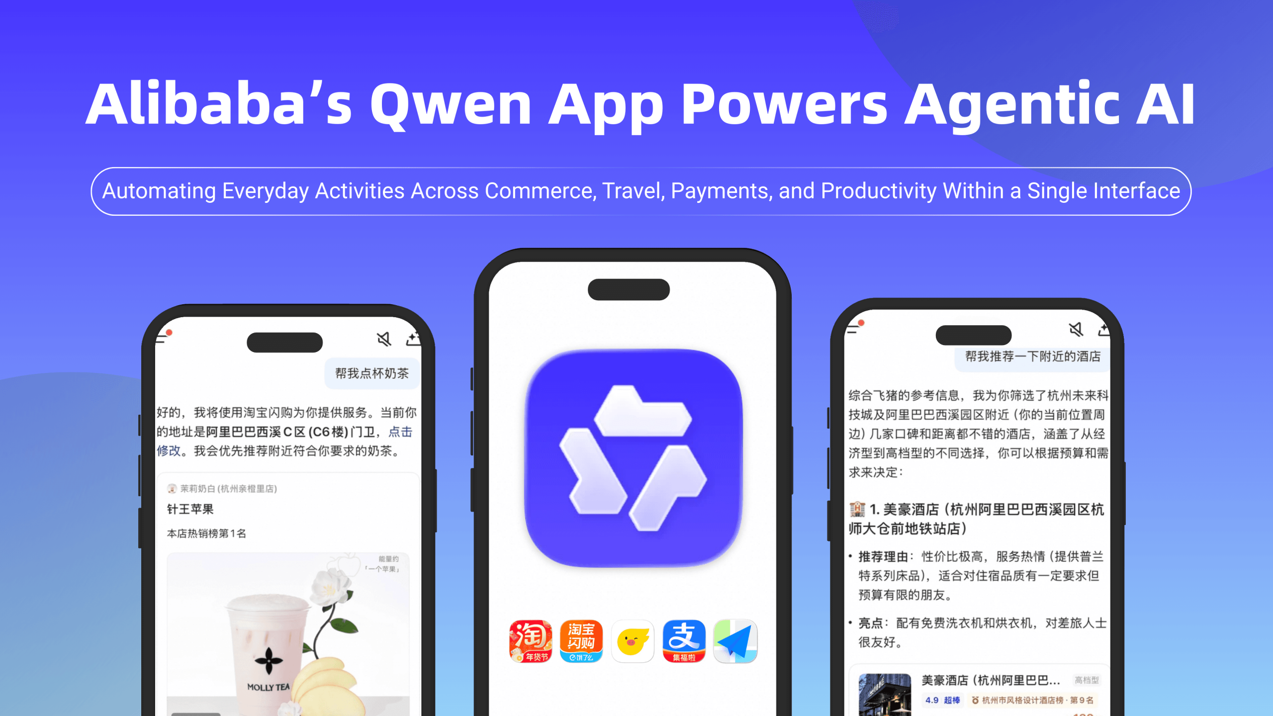Осъществено от най-новия основен модел Qwen3 на Alibaba, приложението Qwen представлява опита на Alibaba да преобразува възможностите на модела в инфраструктура от реалния свят – вграждайки интелигентност директно в потоци на плащания, логистични мрежи, търговски системи и градски услуги.