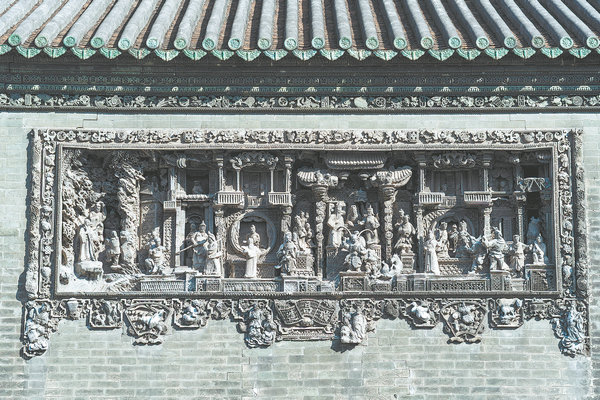 Сложни тухлени резби украсяват наследствената зала на клана Чен, историческо място, което трябва да посетите в Гуанджоу. [Photo provided to China Daily]